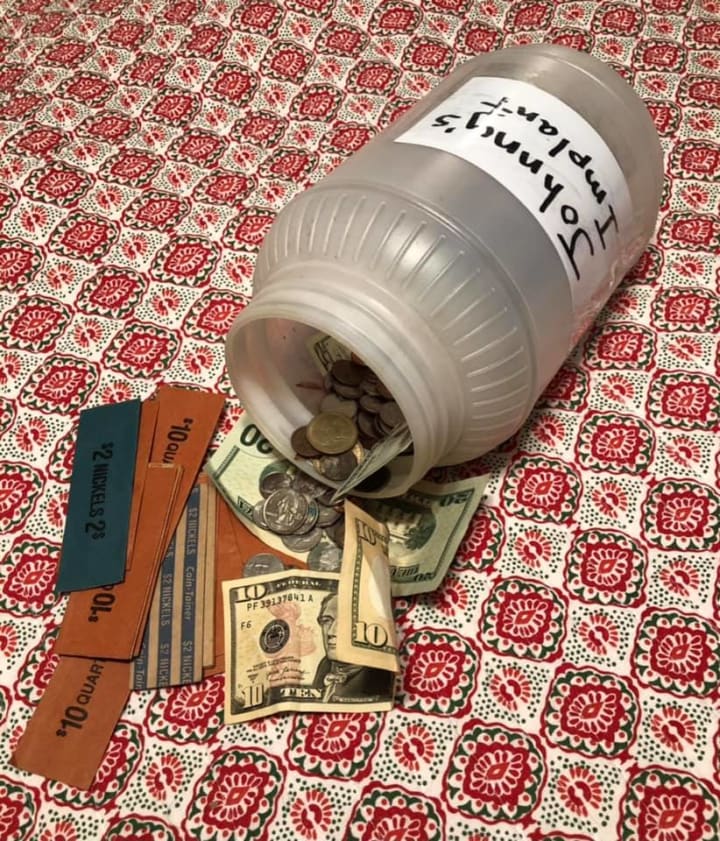 "Oh, don't forget to take the coin jar when you leave today, Jennifer. There's a lot of money in there, and some of it's even folding money."