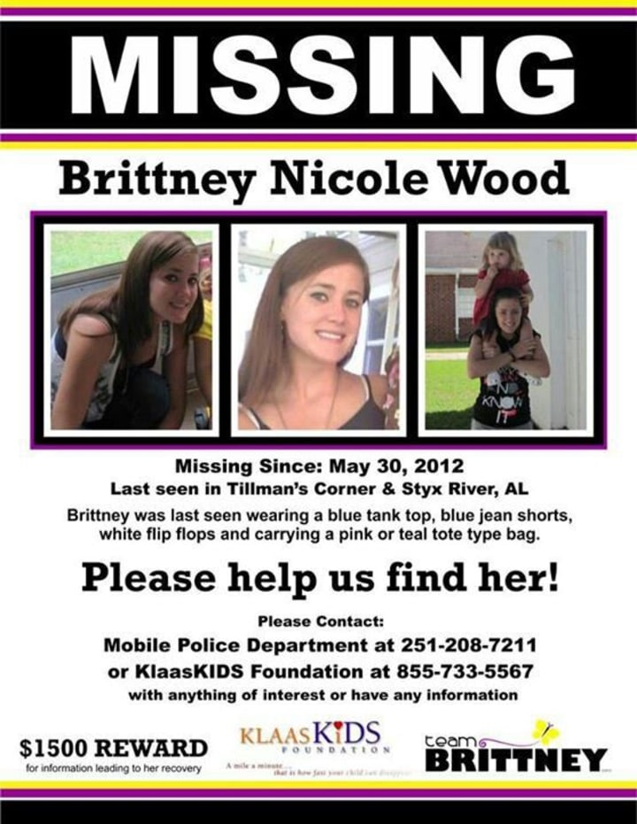 If you want a more comprehensive account of Brittney's disappearance, follow the family's Facebook page dedicated to the case, Missing Brittney Wood. If you have information about Brittney's disappearance, call the Mobile Police Department at 251-208-7211.