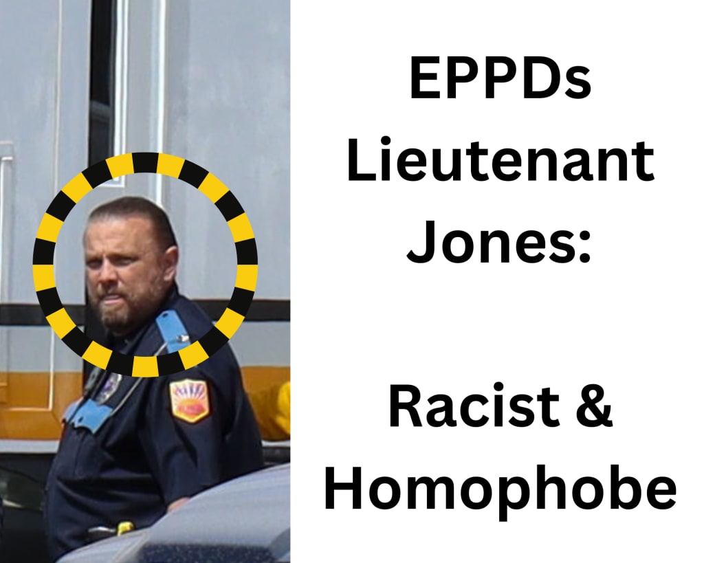 Racist remarks and alleged hate towards members of the LGBTQ+ community should lead to the termination of Lt. Jones's employment with the City of El Paso and the El Paso Police Department.