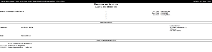 As you can see from the image above, obtained from the El Paso County website, there has been zero movement in Elomari's case.