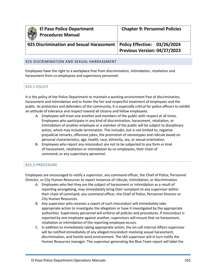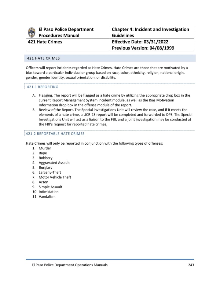 Even the El Paso Police Department's Procedures Manual indicates that Jones's comments are wrong. Why does the Chief of Police, Peter Pacillas, or the City Manager, Dionne Mack, keep Jones employed?