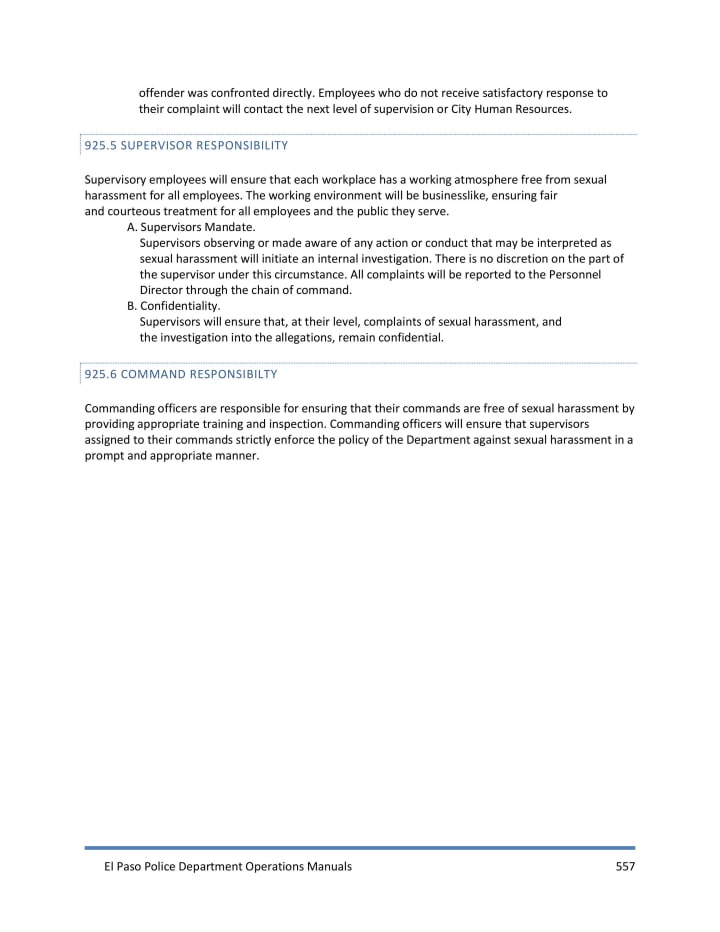 "Even if Marquez filed a complaint against Jones," says another Officer with EPPD, "it won't go anywhere because Jones is a Lieutenant, and everyone knows the Department protects Lieutenants. Just look at Elomari."