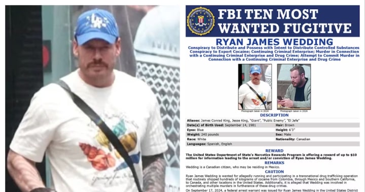The FBI believes Wedding may be hiding in Mexico, using false identities to evade capture. Officials urge the public to report any sightings, emphasizing that he should be considered armed and extremely dangerous.