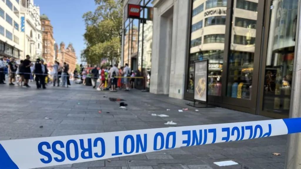 Objects could be seen on the ground at the scene next to the Lego store in Leicester Square