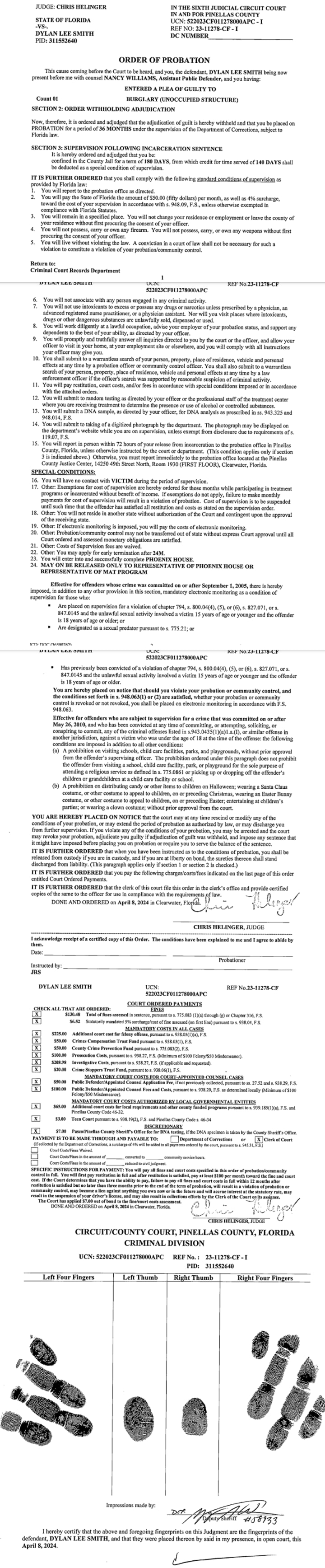 Smith paid $540 in restitution, avoided jail, and was issued an Order of Probation. Among the terms, on Page 2, was to “enter into and successfully complete” outpatient treatment at a place called Phoenix House.