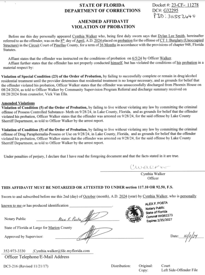 Those two charges became two additional probation violations for when he’s returned to Pinellas County.