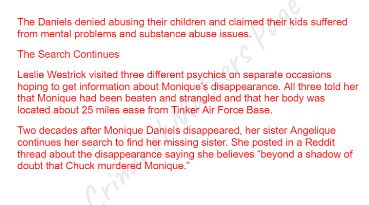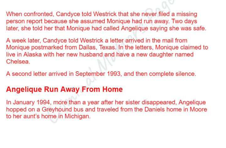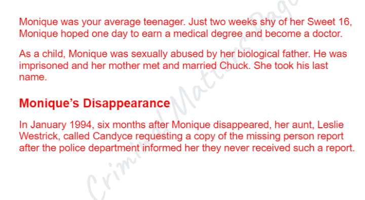 Monique Daniels disappeared in 1992. Her parents said she ran away and did not report her missing until two years later