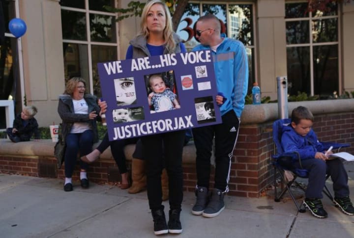 A rally outside the St. Charles County Courthouse called for “Justice for Jax,” after the parents were charged, the paper reported.