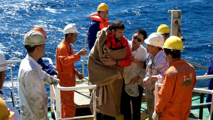 He said he drifted for eight days before being rescued by a passing freighter about 100 miles off the coast of Massachusetts.