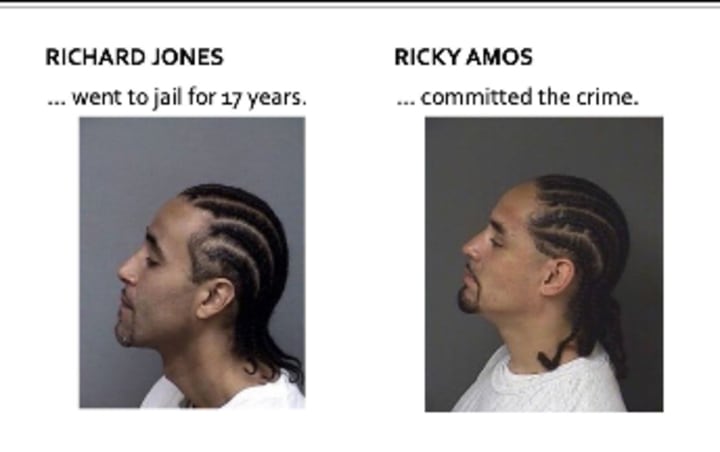 But in 2017, when his case was revisited, the same witness couldn't tell the difference between Jones and a man named Ricky Amos, who looks just like Jones.