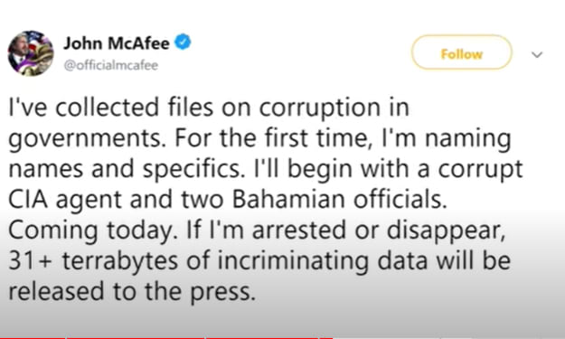 John Mcafee had 31 terabytes of data implicating the US government