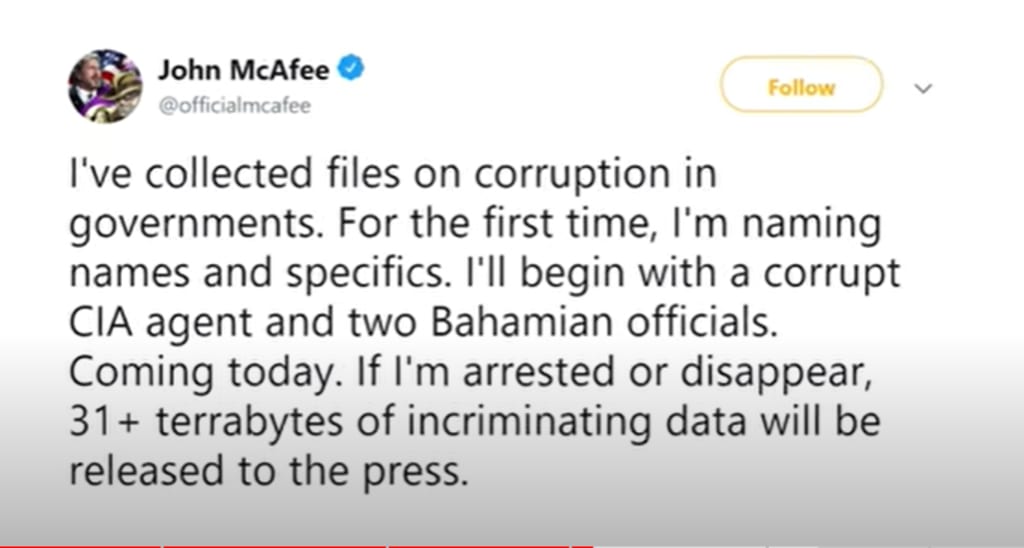 John McAfee, the famous computer programmer who founded the antivirus software company that bears his name, was no stranger to controversy. But even by his standards, the amount of data he claimed to have on US government corruption was staggering.
