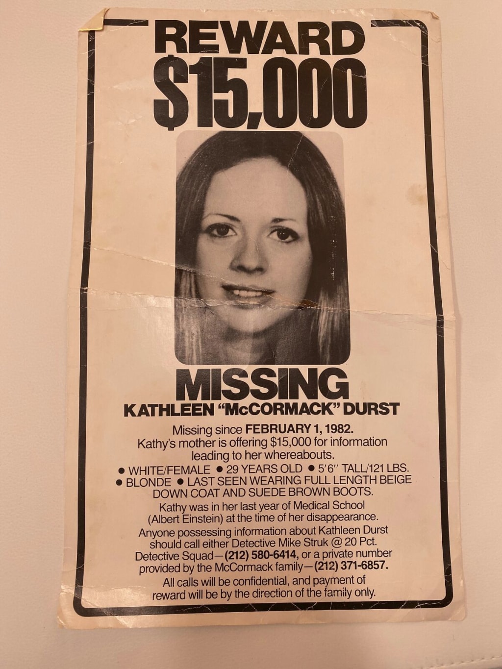 On January 31st, 1982, Kathleen McCormack, 29, was driven by her husband, Robert Durst, from their home in South Salem, New York, to a train station in Westchester. Kathleen boarded a train to Manhattan, or at least that is what Robert told investigators five days later when he reported her missing.