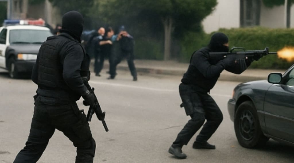"44 Minutes of Hell in the Heart of Los Angeles" On a quiet morning in 1997, a peaceful neighborhood turned into a real war zone… Two men, armed to the teeth and protected by heavy body armor, went head-to-head with an entire city’s police force. Thousands of bullets, dozens of injuries, and one of the bloodiest scenes in modern American history. What drove them? And how did the police find themselves powerless? A bank robbery that spiraled into a live-broadcast nightmare… Get ready for one of the most violent standoffs that forever changed the face of American law enforcement.