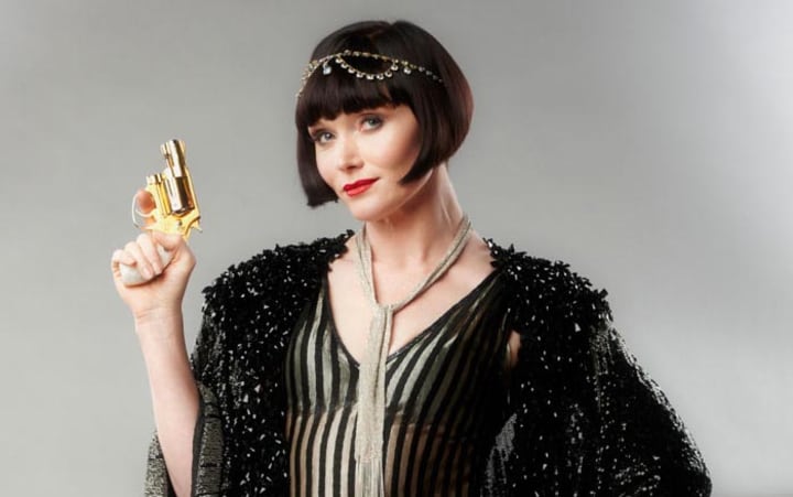 At the start of the series, Phryne returns to Australia after attending/finishing school in England, driving an ambulance during World War I, learning to fly airplanes, and a being a muse for painters in Paris. She has settled into her new home with a cast of characters that aid her in her cases and her life whether they want to or not.