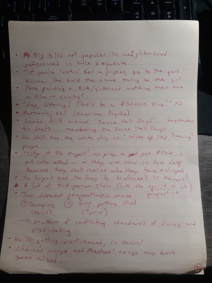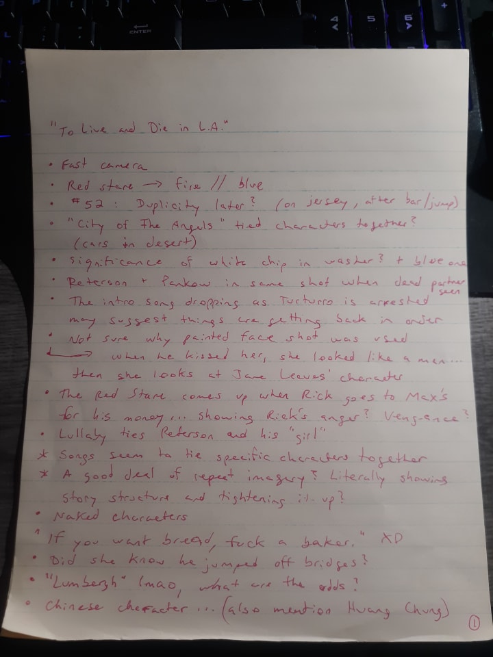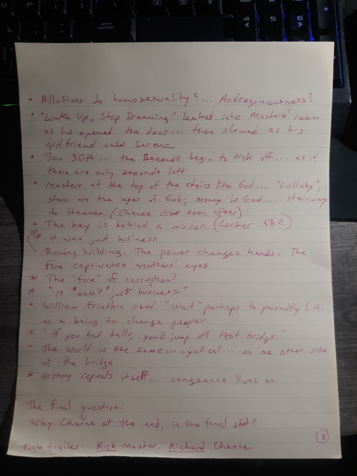 Here are all of the notes I took in the course of viewing the film. It's a lot easier than typing like I did for the movie yesterday! Plus, the data is raw and no corners had to be cut in typing it all out!! You gotta love not having to love technology, don't ya?