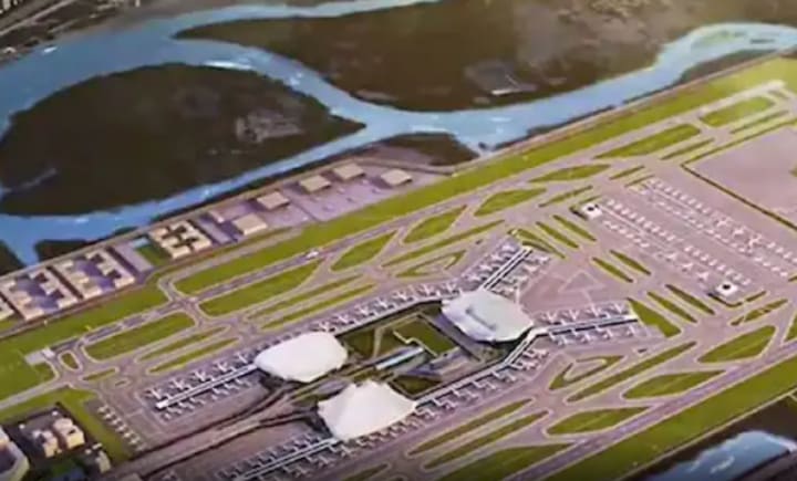 A visual portrayal of the last look of under-development Navi Mumbai Global Air terminal.