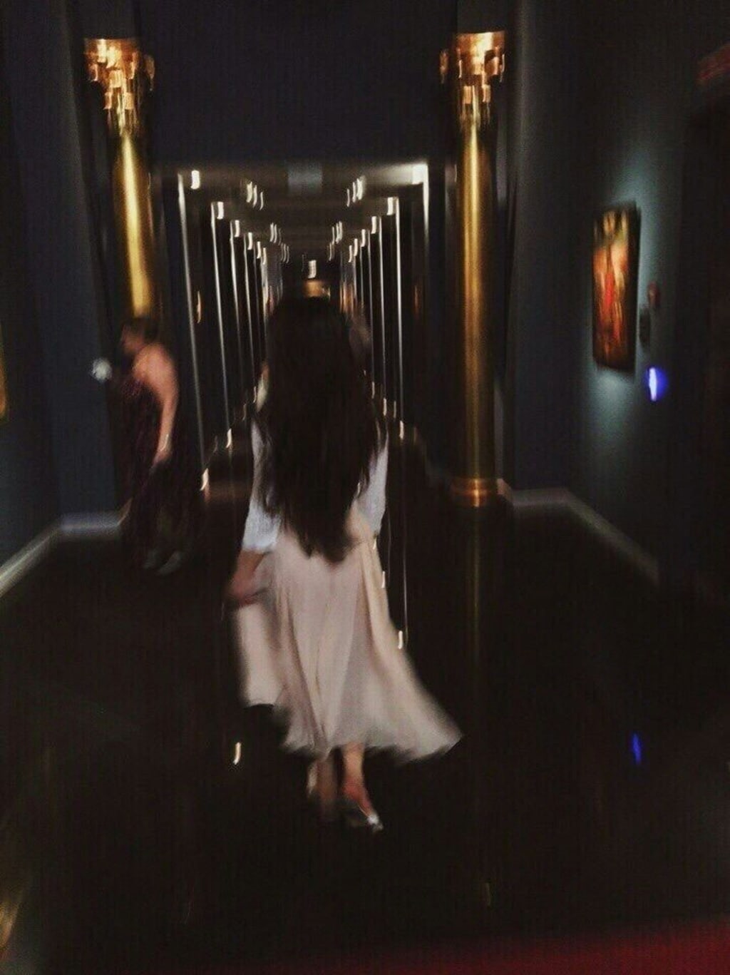Darlissa became calm again and made her way to the rose gold brass elevators.