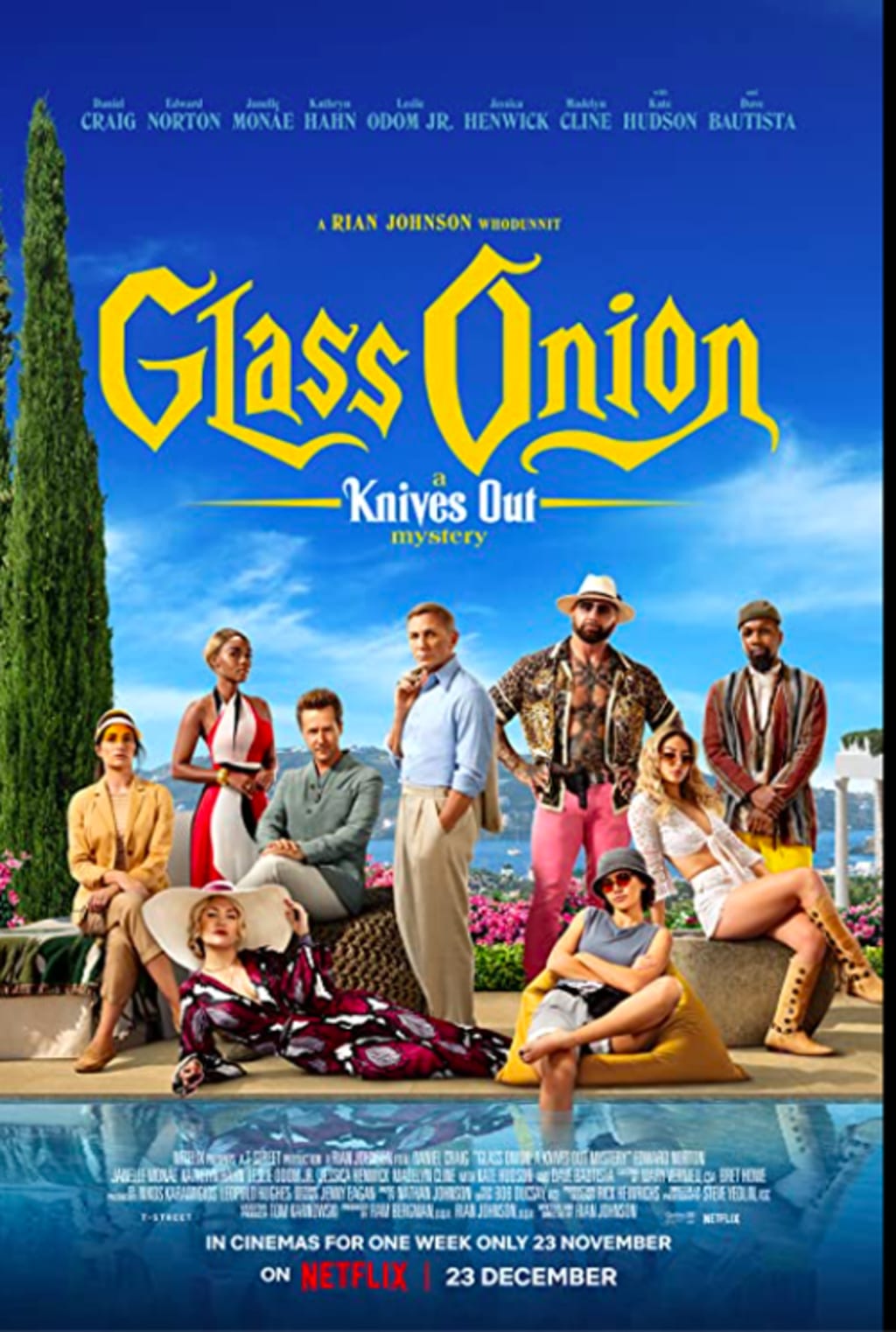 I thought Glass Onion: A Knives Out Mystery, now on Netflix, was even funnier and more fun than Knives Out, which was plenty funny and fun when it came out in 2018. Plus, Glass Onion was just brimming with social relevance, extending its satire of Agatha Christie to our real world at large with a zest and a vengeance. All to the good -- given what our real world is like, we could use all the satire we can get our eyes and ears on.