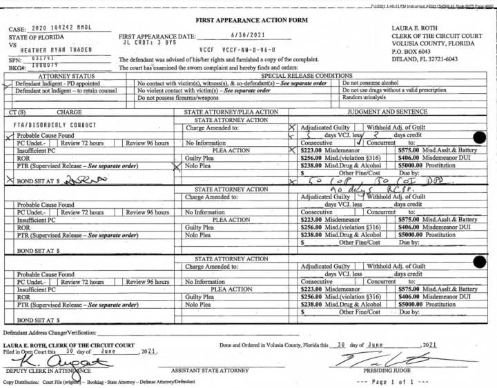 Heather Ryan Thaden was actually on probation for arson at the time, and that was likely her fourth plea deal with prosecutors.