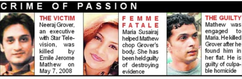 To show their ability in the film business, to support their name in it they go for Chennai, since it is the principal for Tamil film industry. Likewise from everywhere the north India has many individuals head out to Mumbai for film possibility, Neeraj Grover is one among them, he was brought into the world in a little city named Kishna, Uttar Pradesh in 1982, to set his foot in the media business at 26 years old, he came to Mumbai and worked in an Indian form of US TV called Would you say you are more brilliant than a fifth grader? As an imaginative leader chief he was directing tryout for Mahabharata series which is going to be delivered, Kannada entertainer Maria Monica Susairaj came there for an opportunity, Neeraj didn't realize that she was going to change his life topsy turvy, since Maria is a Kannada beginning. She was unable to communicate in Hindi easily, her acting ability wasn't fit to that person, still after all that Neeraj enjoyed her. So they became companions and shared their contact. Maria got a ton of tryout as a result of Neeraj, level rates are high in Mumbai. Maria remained at Neeraj's home and gone to the tryouts, Maria was at that point connected with to a Naval official named Emile Jerome Mathew, despite the fact that she said him a ton of times that Neeraj likes her. So Mathew cautioned her to be cautious with Neeraj, In May 6, 2008, Maria leased level no.201 in Mumbai, to help her settle, Neeraj went there around 10 pm in the wake of illuminating his companions. This is the point at which they all saw Neeraj alive. Since Neeraj didn't get back the following day, his loved ones attempted to reach him, the things I said in the introduction started to occur. They attempted to call him in excess of multiple times however Neeraj didn't answer, so Neeraj companions asked Maria, for that Maria said that he came to her home, after that he went for a party at Andheri, Neeraj family enlisted a missing objection right away realizing that Neeraj went to Maria's level, police begun researching Maria, be that as it may, she said exactly the same thing to the police which she shared with his companions, On may 7, when Neeraj companions called him so often Maria go to one of the calls and police came to be familiar with this, at the point when they got some information about it. Neeraj left the telephone when he showed up at a party at Andheri, following 30 minutes he cam back to get the telephone, Police was minimal dubious and asked where she went on May 7