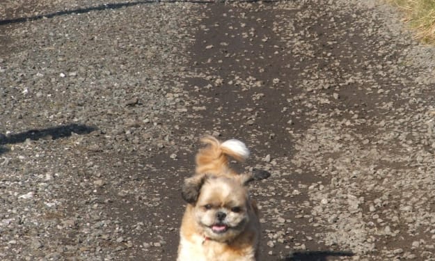 He threw himself down the far side of the dune and slid down and hit the water at the bottom and stood and ran with the briefcase swinging on his arm behind him. The jeans now soaked weighed him down. He ran a few paces down the coastline and tripped over a dog and fell hard on his elbow that folded under him with the momentum. It was a black bulldog. Hole-riddled. Pink tongue lolled out.