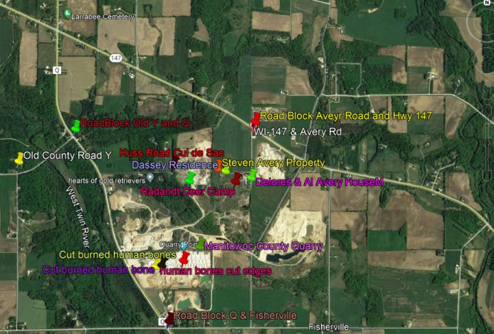 Then there are the multiple pieces of evidence that established that officers spent many days investigating property that didn’t belong to Steven Avery. That investigators set up multiple road blocks that controlled access and traffic to properties that did not belong to Steven Avery . That he Wisconsin State Patrol were tasked to use GPS coordinates and coded location names and that the 3D laser imaging system was used to digitally render scenes and buildings on these properties. That multiple K9 dogs tracked away from Steven Avery’s property and that there were several alerts, including an alert on a burial site. Investigators are documented requesting a specific ambulance and specific officers to respond to the area. That the investigators performed a burial site excavation , that dozens of pieces of evidence was collected. That a coroner was paged and responded and death was pronounced on 80 acre property that belonged to Manitowoc County- the same county Steven Avery was suing for his first wrongful conviction in 1985. Prosecutors and investigators intentionally used misleading evidence location labels, evidence tag # shuffling, and inaccurate police reports to keep this from the defense, media, jury and public.