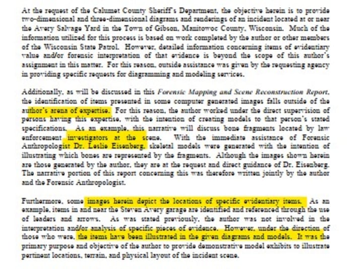 I encourage anyone who hasn’t read this report to do so. Austin explains that he isn’t the one making any conclusions about the evidence and is only providing the images at the request of others. He says the same about the skeletal models that he created depicting the bone fragments with Dr. Leslie Eisenberg. Yet Dr. Eisenberg- the forensic anthropologist who worked with the bone fragments and who never visited the Avery property testified at Steven Avery’s trial that she got her interpretation of the burn pit as being the primary location of the body burning from reading Trooper Austin’s graphic depiction of the scene among other things..