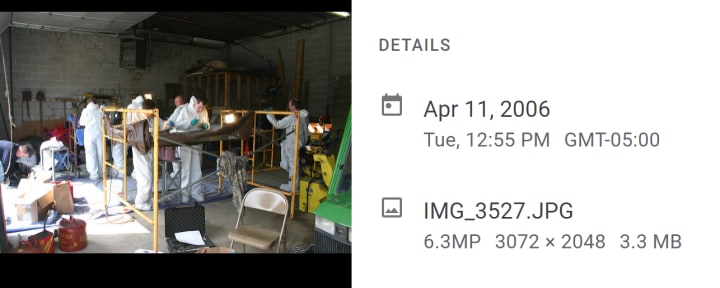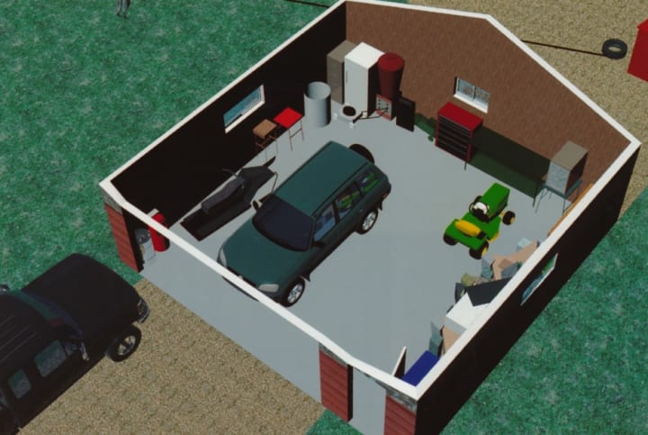 Actual photos of the garage and then these are copies of the digital images created by Wisconsin State Trooper Timothy Austin and used by prosecutors show the same deceptive labels and staging of the scene this particular image shows the RAV inside Steven Averys garage