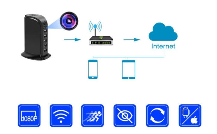 The KAMREA Wireless USB Charger Spy Camera is a discreet and powerful device that can be a game-changer for people looking to keep an eye on their surroundings while charging multiple devices at the same time. It is a wireless remote control device with a camera lens and a 5-port USB power output charging station that makes it an excellent choice for busy households and offices.