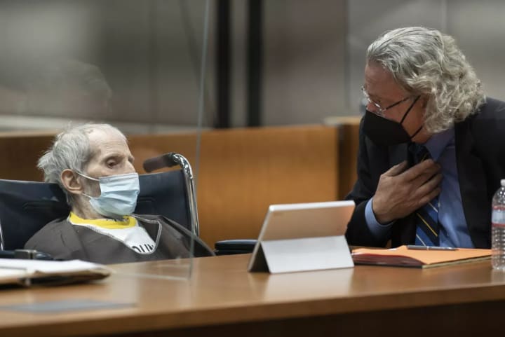 Robert Durst, seated with the defense attorney is sentenced to life in prison