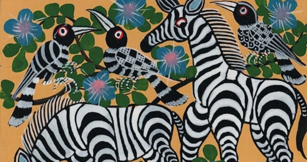 "Tingatinga is a beautiful exotic painting style that originated in East Africa. It is one of the most widely represented forms of tourist-oriented paintings in Tanzania, Kenya and neighboring countries. The genre is named after its founder, Tanzanian painter Edward Tingatinga. It also inspired the kid's animation TingaTinga Tales.