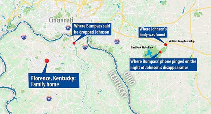 According to him, he dropped her off at 15th and Scott streets in Covington, Kentucky around 1 a.m. on September 23. But something was off. Cell phone records later placed Bumpass’s phone near East Fork Lake in Clermont County, Ohio, around the same time. Paige never made it home, and her family reported her missing later that day.