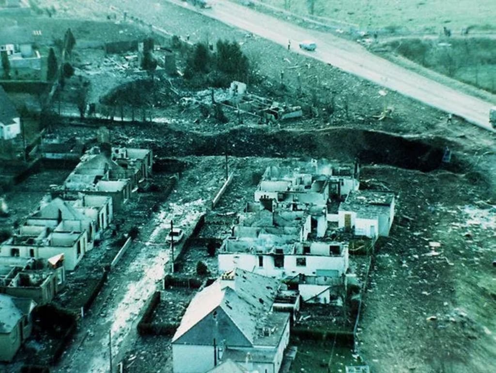 Rescue teams arrived to find bodies littered on the ground and the residents wandering around in disbelief. Fires had broken out across the town, and a 150-foot hole had been left.