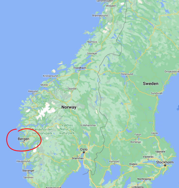 First, let's orient ourselves to Bergen, Norway.