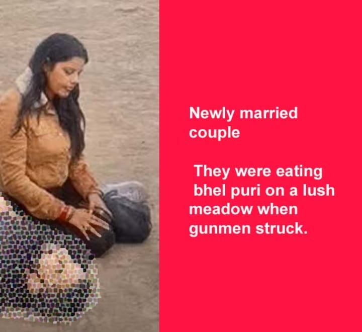 While they were enjoying the nature suddenly five armed militants Started attacking the male tourists, they are only targetting Hindu male tourists. attackers asking for names and religions of the Tourists before shooting them. Men were forced to remove their trousers to check for a lack of circumcision before being shot at close range, this brutality continued for 30 minutes some of the people ran towards the forest to hide behind the trees .