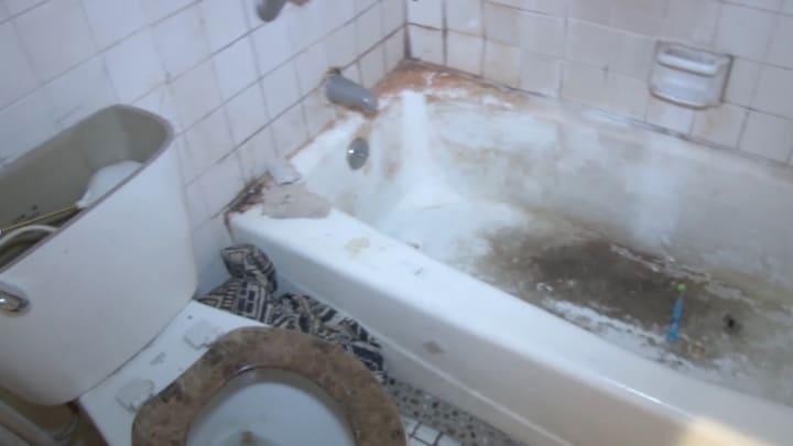 The house did not have electricity, rotting food lined the refrigerator, and rust and mold sprawled across the bathroom walls.