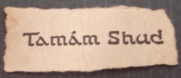 Four months after the body had been found, the most bizarre clue to date came to light. A small pocket was sewn into the waistband of the trousers. A piece of paper was ripped from a book; the paper contained two words 'Tamam Shud.' Tamam Shud is a Persian phrase that means 'it is ended.' Leading authorities to speculate further that the man had committed suicide. The paper had been torn from a New Zealand book of poetry called The Rubaiyat by Omar Khayyam.