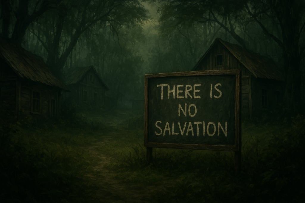 The Message: “There is no salvation” was scribbled on a school chalkboard in hurried handwriting.