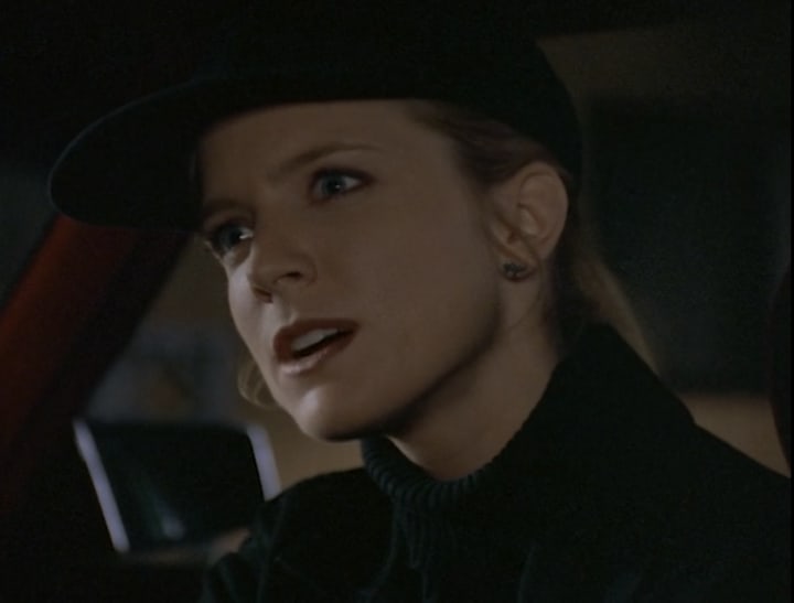 The villainess, Lori Esker, was renamed Cheryl Ann Davis, and she was played by Courtney Thorne-Smith. At the time of this film, Thorne-Smith was playing Alison Parker on the Fox drama Melrose Place, and as I watched this, I absolutely drank in seeing Courtney Thorne-Smith playing such a psychotic villainess. Cheryl continued to go further down the rabbit hole in this film, and Thorne-Smith's portrayal of Cheryl's insanity was just so delicious; I absolutely loved it! To the best of my knowledge, I don't think Courtney Thorne-Smith's done the villainess thing before; I did my homework on her MP character, and based on what I read, Alison was pretty much on the babyface side. Considering what I do know about some of MP's evil beauties (which I also drank in), it is a bit refreshing to learn about a good character on that show.