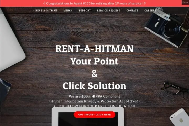 The website, which was initially created for a cybersecurity company, is a parody site that warns visitors that it is not a real service and that any requests will be forwarded to law enforcement agencies.