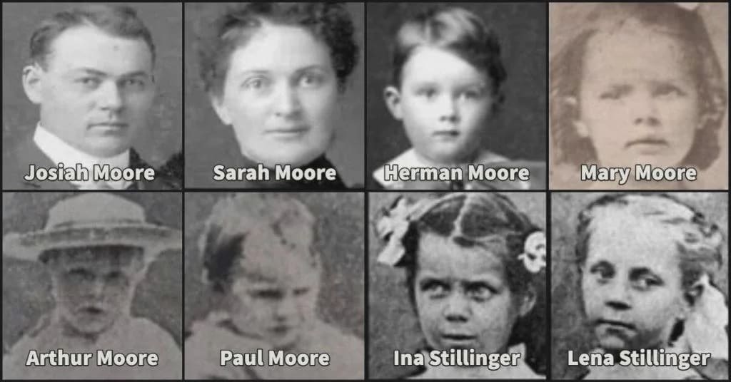 On the morning of June 10, 1912, Mary Peckham, a neighbor of the Moore family, became concerned when she noticed that the Moore household was unusually quiet. The Moores, a well-respected family in Villisca, consisted of Josiah Moore, his wife Sarah, and their four children: Herman (11), Katherine (10), Boyd (7), and Paul (5). The previous evening, the family had attended a church event and were joined by two young friends of Katherine’s, Lena and Ina Stillinger, who stayed over for the night.