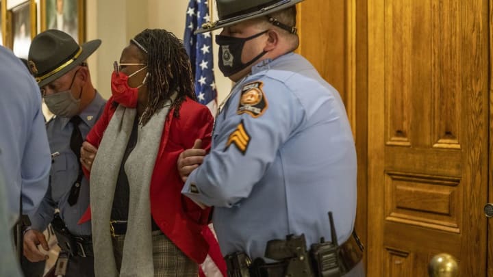 I saw photos of these officers having to arrest a representative of GA,,and thought more than likely out loud. To these two officers I am sorry that your duties had to include arresting a politician, the professionalism (and by the way, completely proper escorting arm hold) you both shown in the execution of your duties is not unnoticed or unappreciated. You represented yourselves and your department like every officer should.