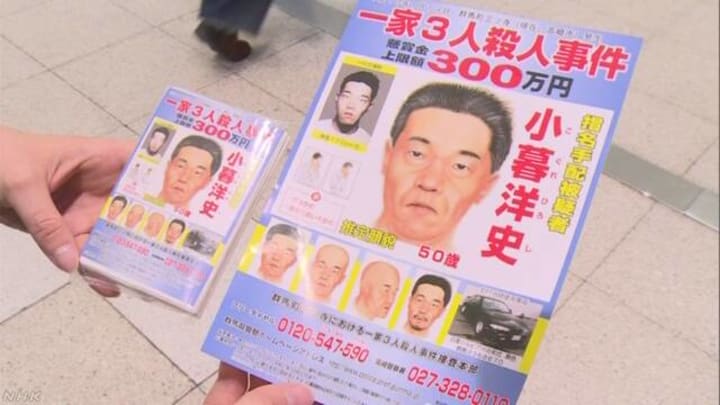 Wanted over the killing of three persons in Takasaki City in 1998, Kogure Hiroshi disappeared after the killings and has not been seen since.