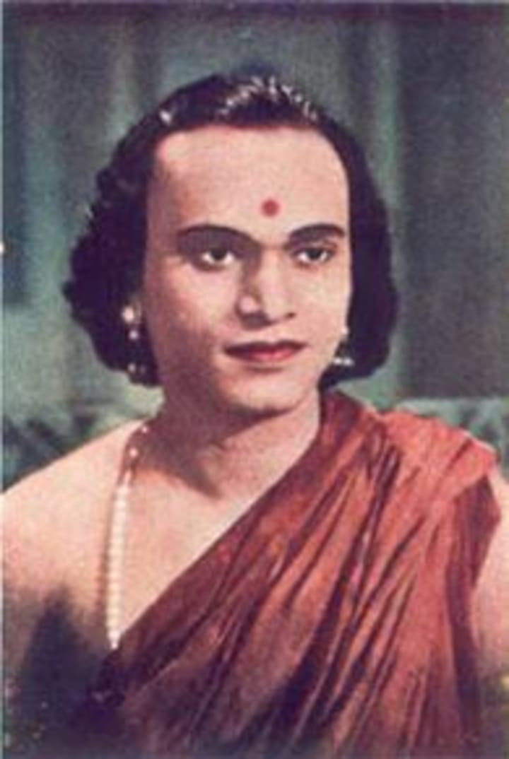 M. K. Thyagaraja Bhagavathar (1909-1959) was one of the biggest stars of early Tamil cinema. With his trademark long hair and his sweet voice, he set long-standing movie records. He was appreciated for his generosity and was perhaps the only film actor to be awarded a "Rao Bahadur" title (which he refused).
