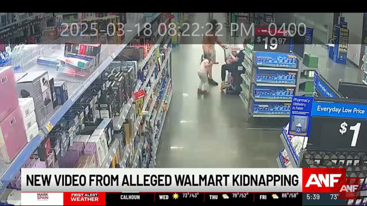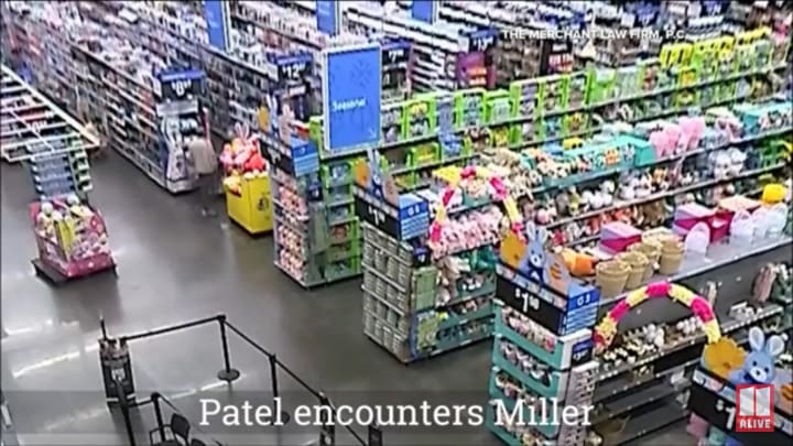 Miller lost control of the cart again, reportedly running over her own child’s foot. The other shopper who witnessed the alleged kidnapping came over to assist her. Surveillance footage reportedly shows her laughing with this shopper shortly afterward. Patel, meanwhile, continued his search with the help of another employee, eventually locating the Tylenol and showing it to Miller on his way out. She gave him a thumbs-up gesture.