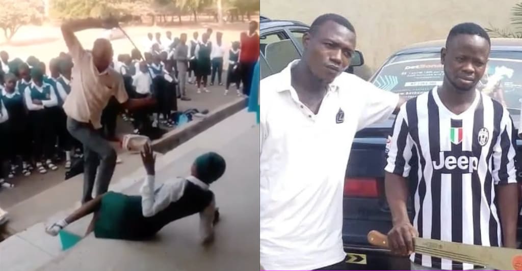 While the teacher was teaching, some of the students including the suspect's daughter were mocking the teacher and distracting other students. The teacher after identifying those disturbing the class, caned them as a corrective measure. But the suspect's daughter went home and reported to her father, consequent upon which her father mobilized two thugs and stormed the school with the cutlass.