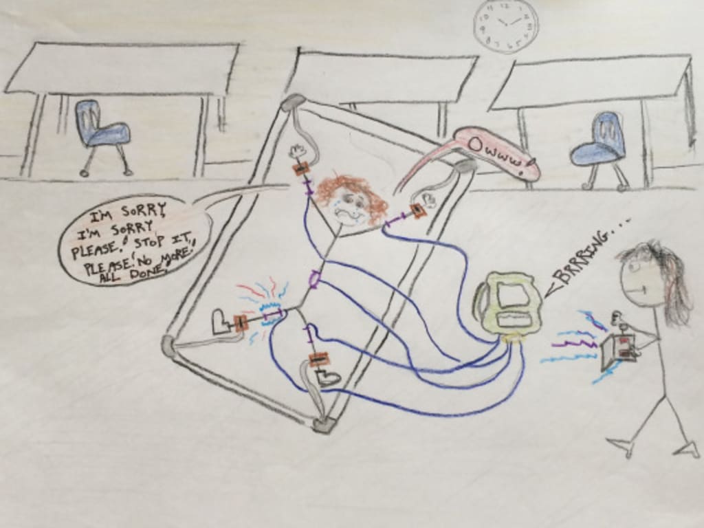 The image above is a drawing of a student of the Judge Rotenberg Educational Center, the JRC, getting painful skin shocks from a former employee there. Sadly, these images and stories are not made up. This is really happening. For decades, the JRC has used a device called the Graduated Electric Decelerator, or GED to send painful skin shocks to students with disabilities and students of color. This device has been deemed by The United Nations to be a torture device. This has a huge negative affect on the Autism community, because the JRC still continues to use harmful and hurtful shocks as behavioral modification. Survivors of this cruel practice will all testify against it, because the trauma they endured will stay with them forever.