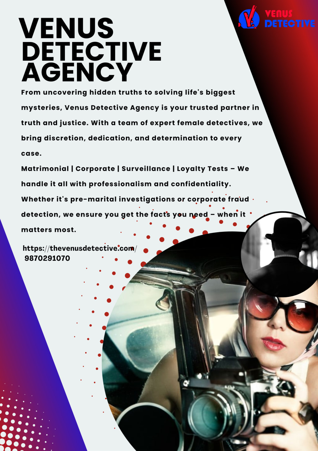 Selecting a moderator Private Detective in Noida is not just finding a person to track or investigate. It's about trusting a team that can hear your concerns, keep your secrets safe, and provide results with precision and urgency. At Venus Detective Agency, we provide: