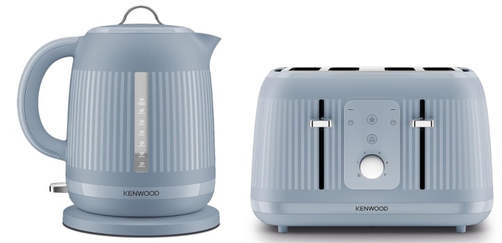 We recently tested the Kenwood Dusk Collection kettle and 4-slot toaster combo in Stone Blue. It's a sleek addition to any kitchen. The design is modern and elegant, with a textured matte blue finish and glossy trims.
